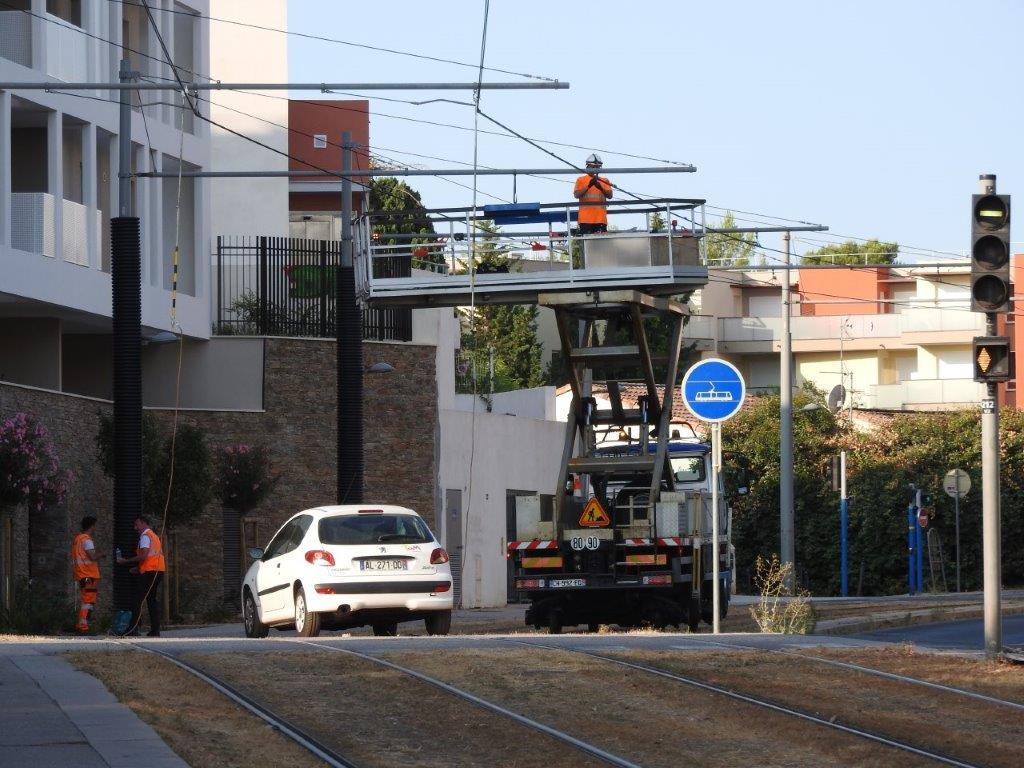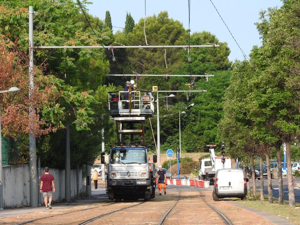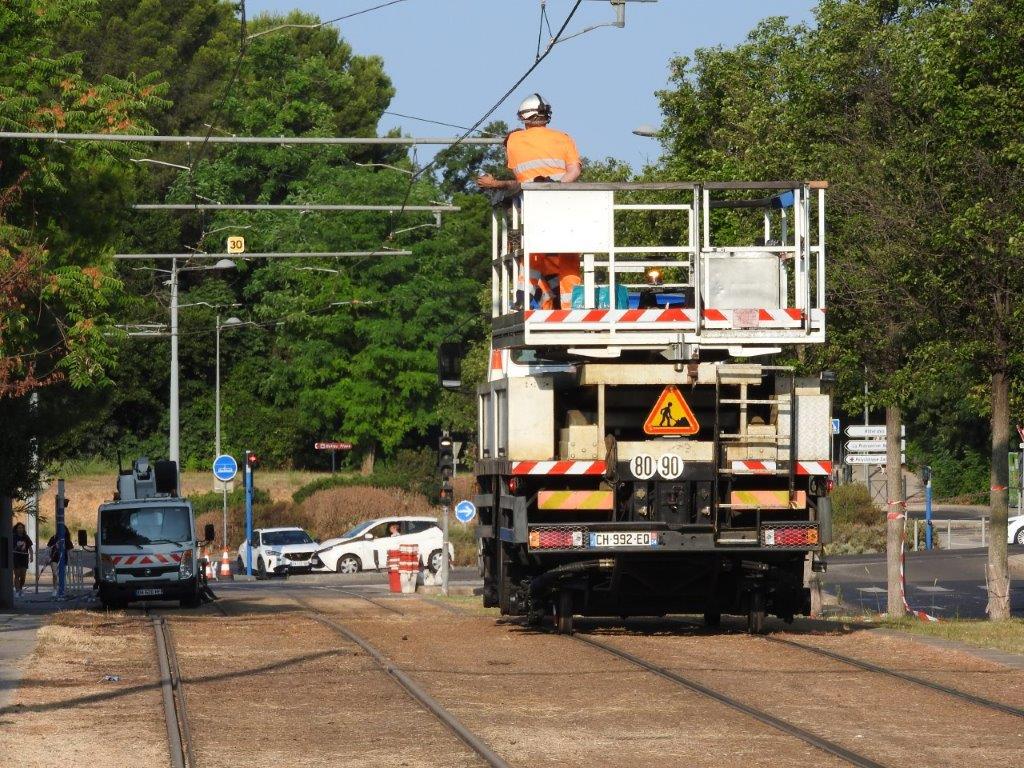 Les techniciens de TaM et ceux des entreprises extérieures intervenantes ont réalisé un travail remarquable de jour, sous un soleil de plomb, comme de nuit afin de réparer deux milles mètres de câbles aériens entre les stations « Sabines » et « Villeneuve d’Angoulême ».