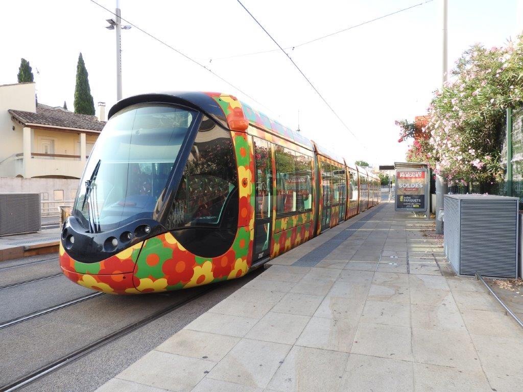 La rame 2052 Citadis 302 Alstom, photographiée ici à son arrivée à 10h35 à la station « Sabines » en provenance de « Jacou » et à destination du terminus « Saint Jean de Védas – Centre », est la première à avoir circulé en service commercial sous la ligne aérienne de contact réparée entre les stations « Villeneuve d’Angoulême » et « Sabines », le dimanche 23 juillet 2023. Copyright : Edouard Paris