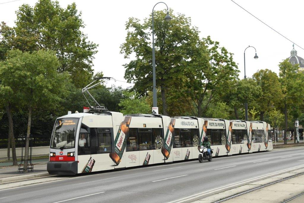 - 56 rames articulées à plancher surbaissé intégral (21,5 cm au-dessus du rail) Flexity Wien type D numérotées 301 à 356, livrées par le constructeur canadien Bombardier entre 2018 et la fin de l’année 2020 jusqu’à la rame numérotée 318, puis par le constructeur français Alstom, repreneur de la branche transport du groupe Bombardier, en ce qui concerne les suivantes, entre le mois de mars 2021 et aujourd’hui. Ces 56 rames font partie d’une commande globale de 119 rames livrables jusqu’en 2026, un nombre qui pourrait passer à 132 si une option d’achat portant sur 13 nouvelles rames est levée. Les rames Flexity Wien type D, toutes fabriquées en Autriche, remplacent progressivement les motrices articulées de type E2 des séries 4000 et 4300, dont les plus anciennes circulent sur le réseau viennois depuis quarante-cinq ans.
