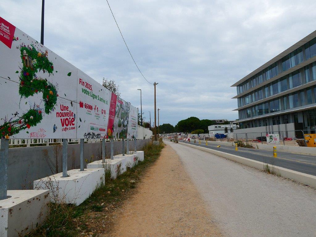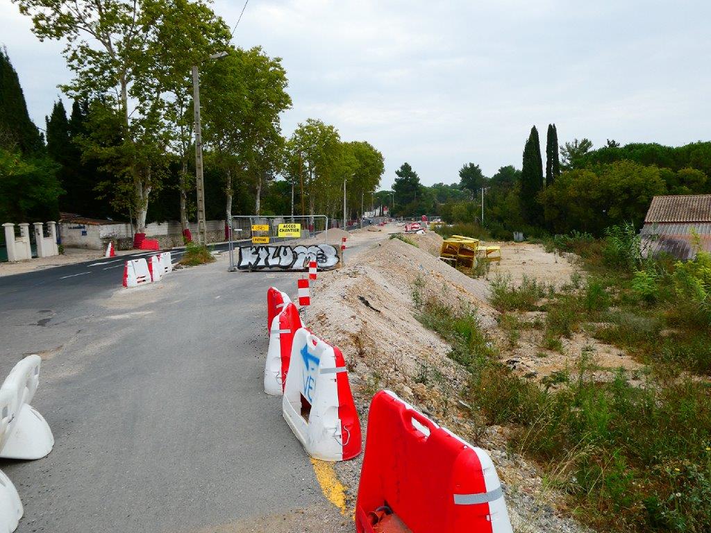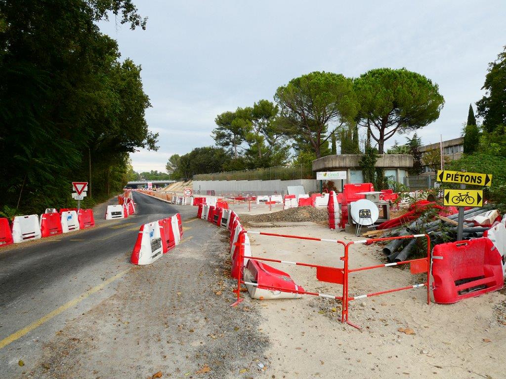 Sur une longue portion de la route de Mende à Montpellier, des travaux préalables à la construction de la future ligne 5 de tramway ont été lancés le lundi 15 avril 2019, il y a quatre ans et demi. La pose des voies ferrées est programmée pour l’été 2024.