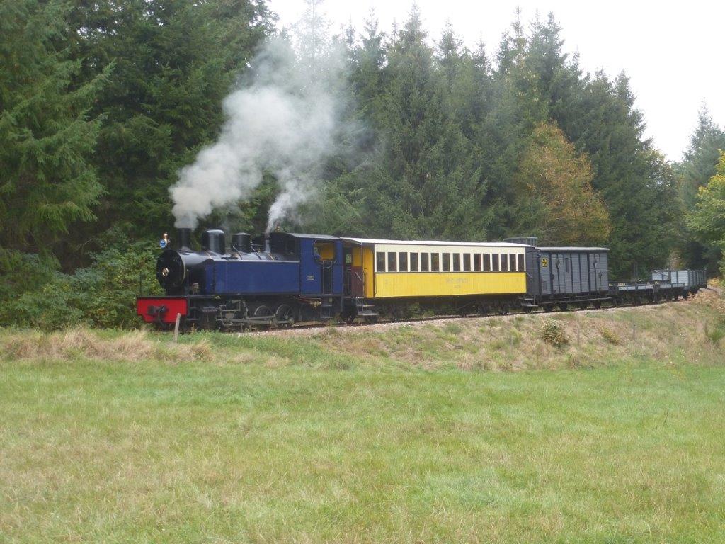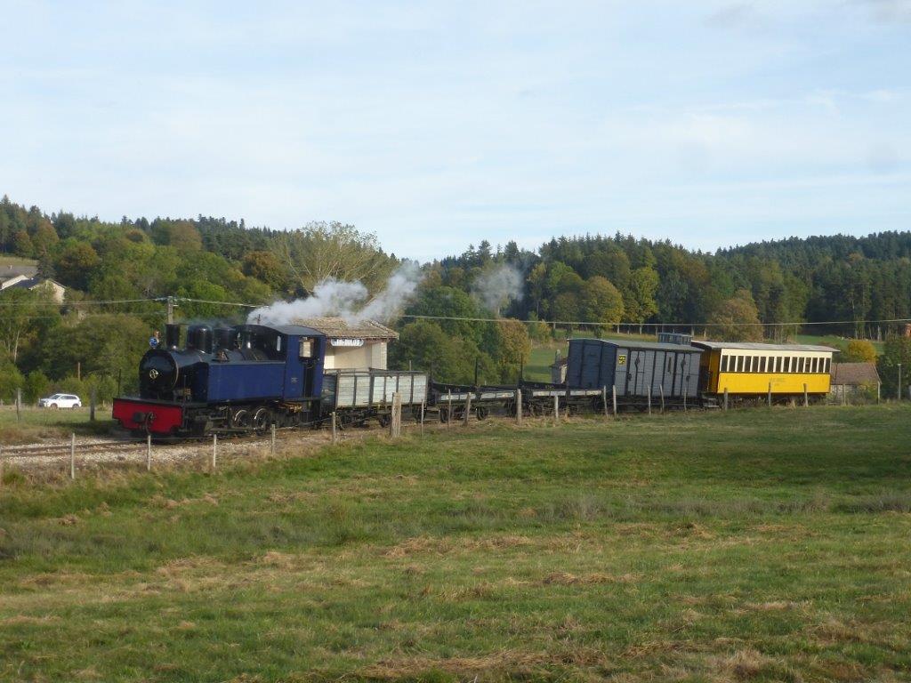 Le dimanche 15 octobre 2023, sur la ligne du chemin de fer touristique et historique à voie métrique Velay-Express, qui relie la gare de Raucoules-Brossettes (Haute-Loire) à celle de Saint-Agrève (Ardèche), distantes de 26,6 km, la locomotive à vapeur n° 22 de type 040-T, construite en 1923 par la société Corpet & Louvet, a tracté, tant à l’aller qu’au retour, un train spécial mixte voyageurs-marchandises composé d’une voiture voyageurs à bogies ex-Réseau breton, du fourgon DDifv 2603 (année 1904) dit « Le Bourvil », du wagon plat à traverse pivotante Htv 6583, du wagon plat à traverse mobile Ht 136 et d’un wagon tombereau de type G.