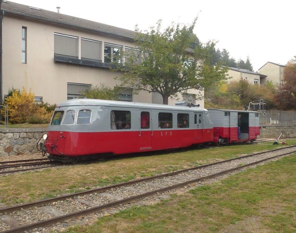 Tout comme en fin de matinée, les deux trains ont croisé l’autorail n° 313 et sa remorque-messagerie n° 30 circulant en sens inverse, en gare du Chambon-sur-Lignon – Mazet, entre 16h et 16h20.