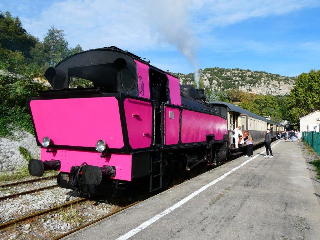 Le reportage photo, qui suit, a été réalisé le dimanche 22 octobre 2023 entre Anduze et Saint-Jean-du Gard. C’est la locomotive à vapeur n° 1751 040T Krupp (année 1937), recouverte en grande partie d’une peinture rose pour marquer le soutien de l’exploitant du Train à Vapeur des Cévennes en faveur de la lutte contre le cancer du sein, qui assurait la traction du train touristique le mardi après-midi 24 octobre 2023.