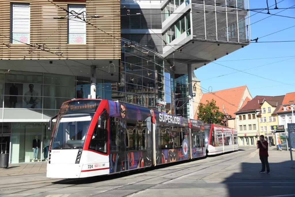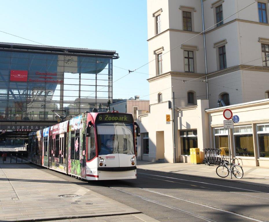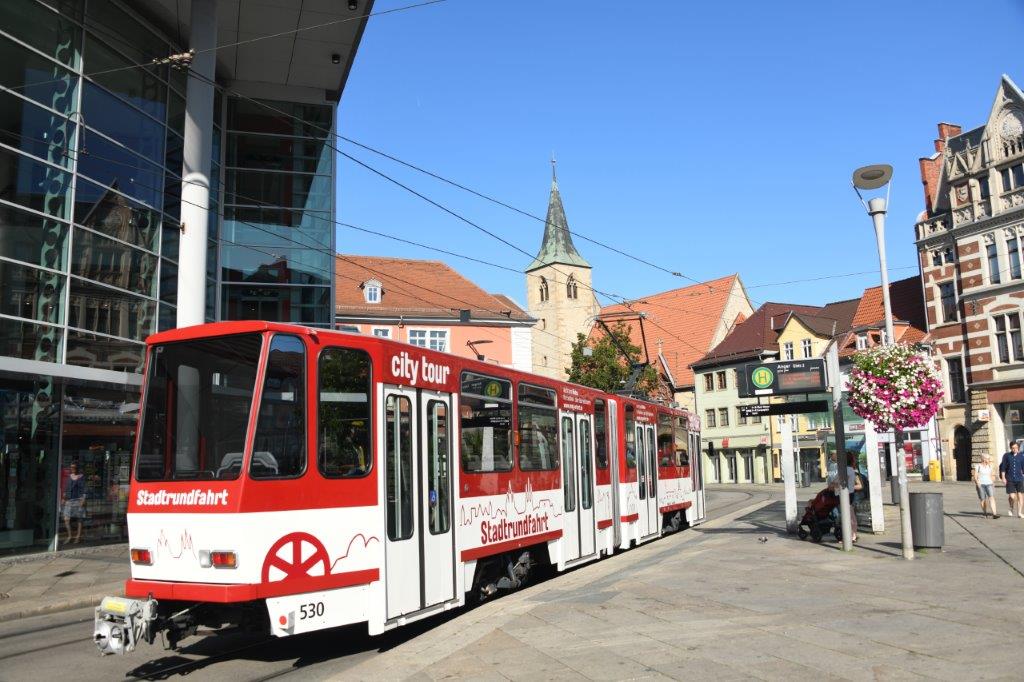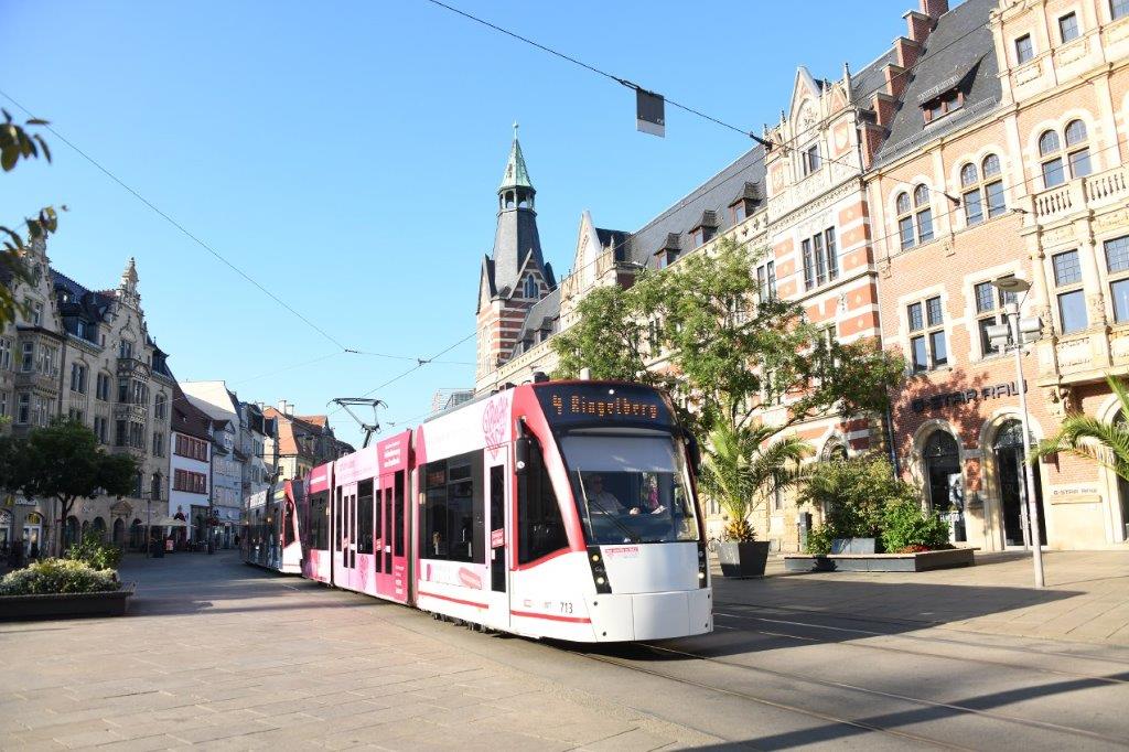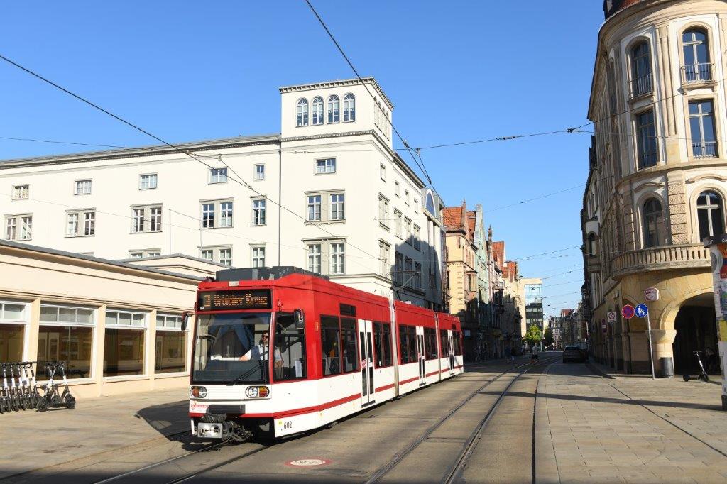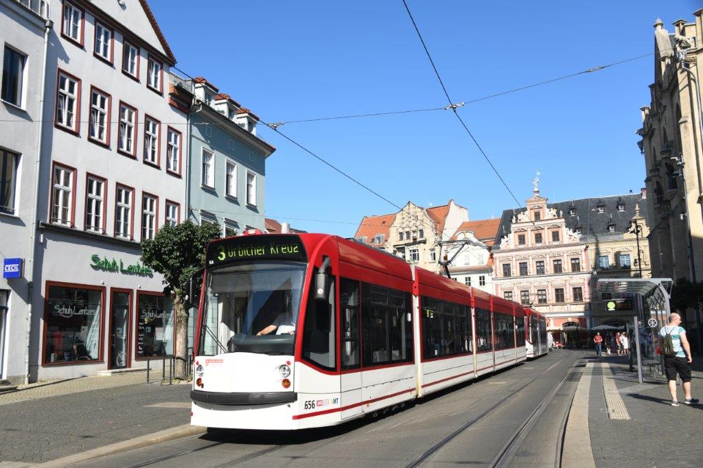 Le carrefour stratégique des six lignes de tramway se situe dans le centre historique d’Erfurt à la croisée de Bahnhofstraße, Schlösserstraße et Anger. La gare ferroviaire principale d’Erfurt est desservie par les lignes 1, 2, 3, 5 et 6 alors que la desserte de l’aéroport, fréquenté par 133 779 voyageurs en 2022, est assurée par la ligne 4.