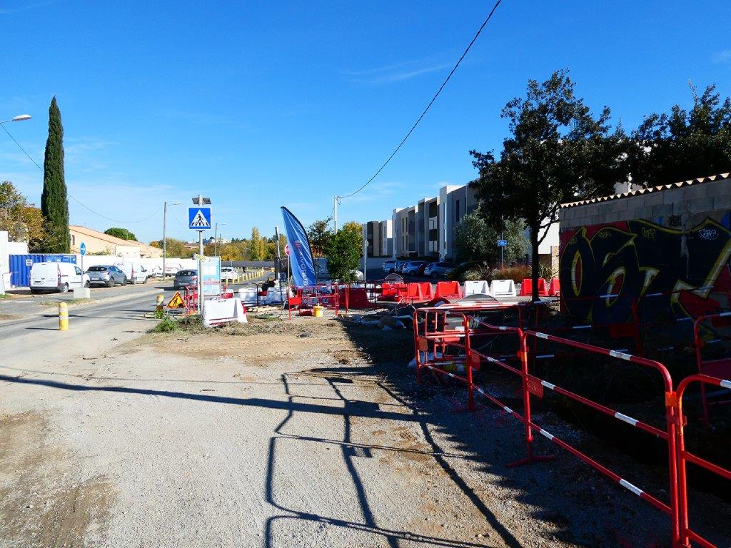 Le maintien d’une voie de circulation routière dans chaque sens, la construction de la plateforme du tramway équipée de deux voies ferrées, la création d’une piste cyclable à double sens et celle d’un cheminement piéton de part et d’autre de la route de Lavérune nécessitent un élargissement de cette artère très passagère débouchant sur un nouvel alignement des limites des propriétés privées jouxtant la voie publique matérialisé par le déplacement en retrait de murs de clôture reconstruits.