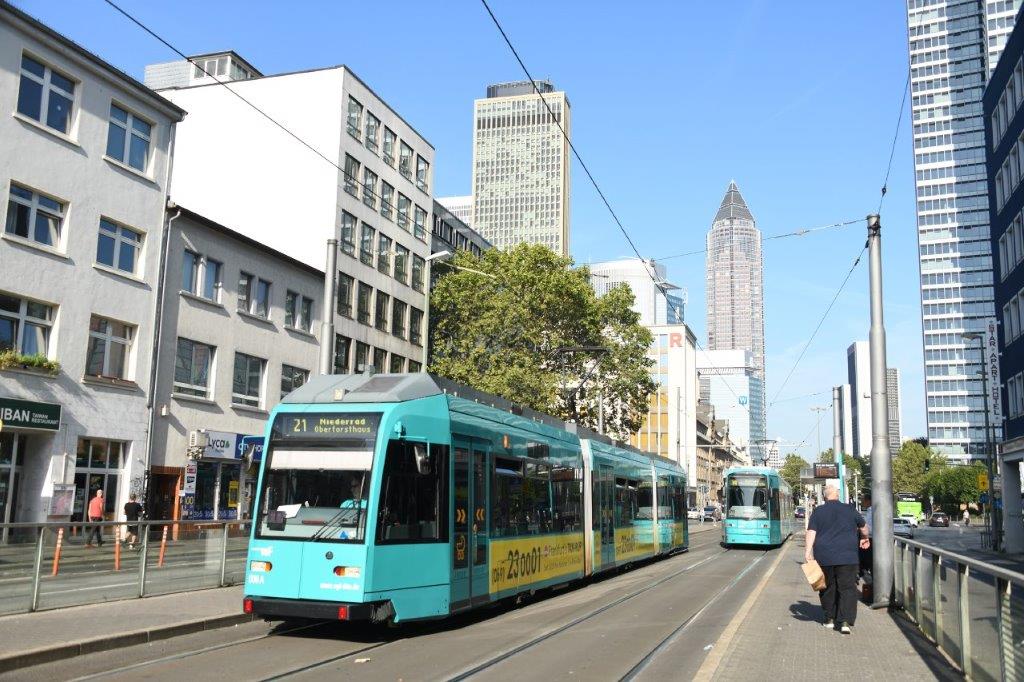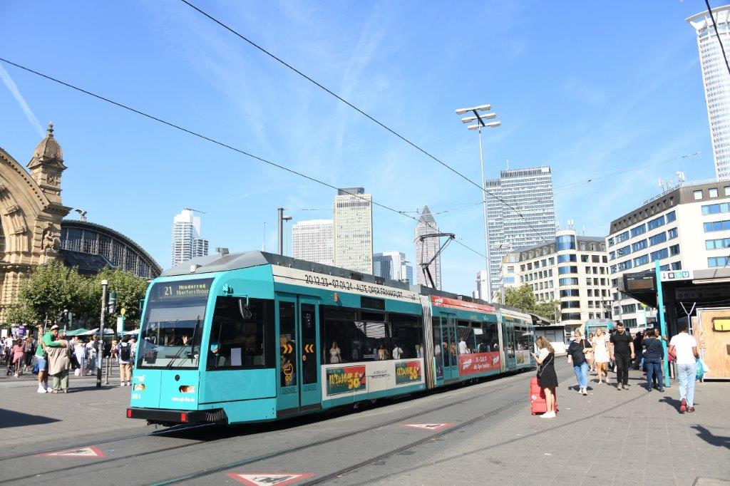 La ville de Francfort-sur-le-Main dispose d’un réseau de transport public très dense doté à ce jour de neuf lignes de métro numérotées U1 à U9, de huit lignes de tramway numérotées 11, 12, 14,15,16,17, 18 et 21, d’une ligne de tramway numérotée 19 fonctionnant tôt le matin du lundi au vendredi, d’une ligne de tramway numérotée 20 circulant à l’occasion des matches de football et d’événements majeurs se déroulant au Waldstadion également dénommé Deutsche Bank Park, et d’une quatre-vingtaine de lignes de bus, le tout exploité par la société Stadtwerke Verkehrsgesellschaft Frankfurt am Main mbH (VGF) qui n’a pas la main sur la tarification, cette dernière étant gérée par l’association Rhein-Main-Verkehrsverbund (RMV), une tarification chamboulée à la suite de l’avènement, le lundi 1er mai 2023, du Deutschlandticket à 49 € par mois, qui permet à tout souscripteur de cet abonnement mensuel de voyager dans toute l’Allemagne en 2e classe à bord des trains régionaux et de quelques trains longue distance et d’utiliser l’ensemble des réseaux de transport public allemands locaux et régionaux.