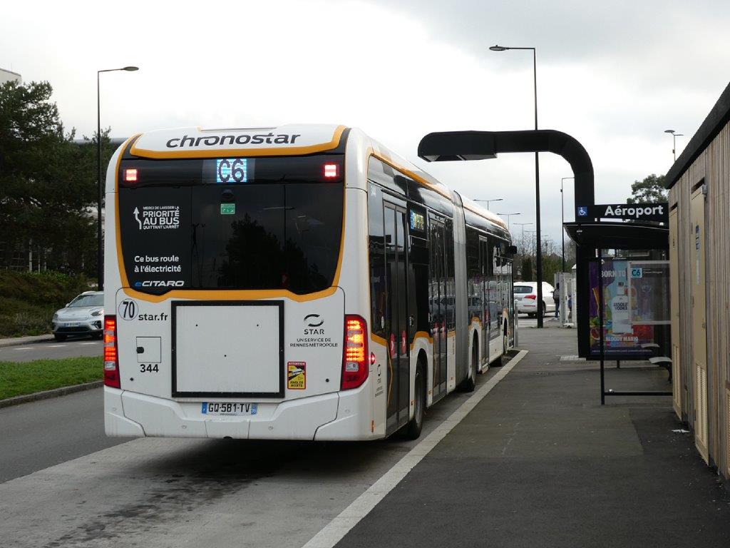 Photos prises à Saint-Jacques-de-la-Lande, au terminus « Aéroport » de la ligne Chronostar C6 du réseau STAR, le mercredi 27 décembre 2023. Copyright : Edouard Paris