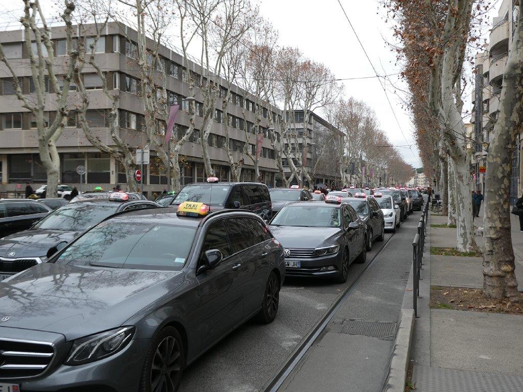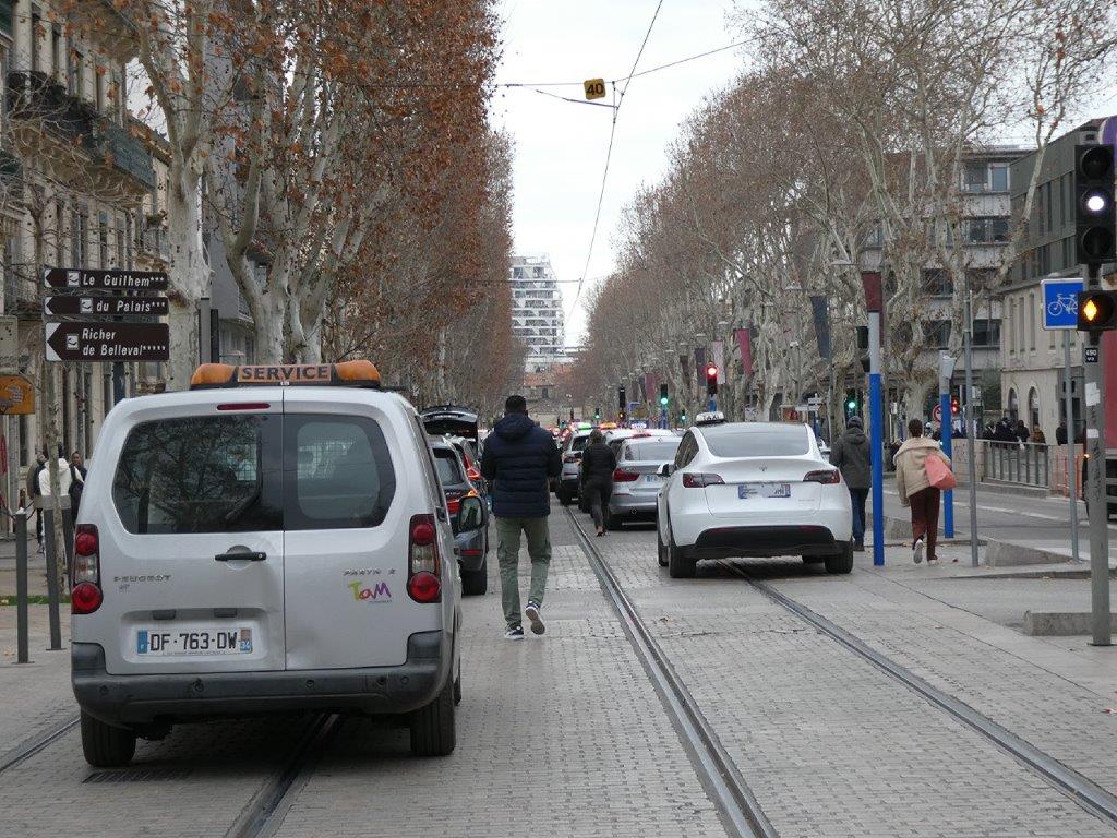 En raison d’une manifestation des artisans taxis organisée ce lundi 29 janvier 2024 devant les locaux de la Caisse primaire d’assurance maladie de l’Hérault, cours Gambetta à Montpellier, la circulation des rames opérant sur la ligne 3 est interrompue dans les deux sens entre les stations « Saint-Denis » et « Plan Cabanes » depuis le milieu de matinée, plusieurs dizaines de véhicules étant stationnés aussi bien sur la chaussée que sur la plateforme du tramway.