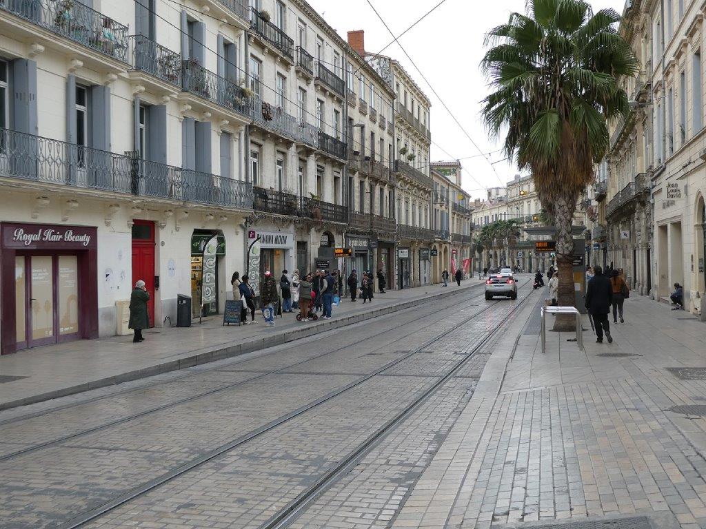 Vous remarquerez que sur le boulevard du Jeu-de-Paume à Montpellier, les lignes aériennes de contact sont soutenues par des câbles fixées aux façades des immeubles, d’où l’absence de poteaux.