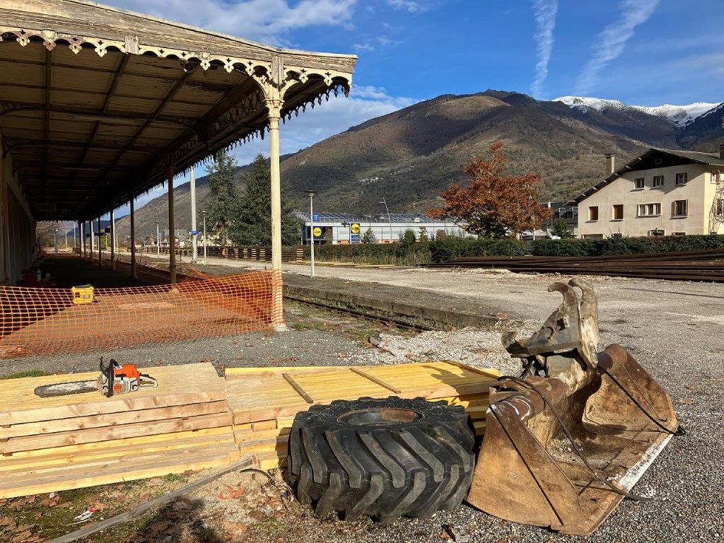 Le chantier de réhabilitation de la ligne Montréjeau – Luchon a officiellement débuté le lundi 4 décembre 2023. Les travaux consistent à débroussailler et à déboiser la plateforme et les talus, à nettoyer les fossés et aqueducs, à découper et à évacuer les rails et traverses usagés, à démolir les actuels et anciens quais, à rénover des ouvrages d’art (tunnel (unique de 51 m), viaducs (au nombre de 8) et ponts), à conforter des parois rocheuses, à reconstruire en totalité la voie ferrée, à supprimer plusieurs passages à niveau, à sécuriser les passages à niveau conservés et à installer les appareils de télécommunication et de signalisation.