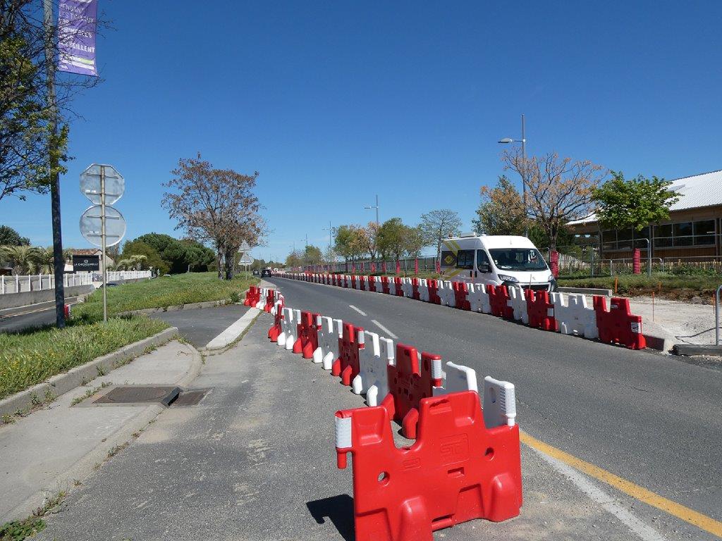 Photos prises le long du tracé du premier tronçon de la future ligne B1 de BusTram entre Montpellier « Place de l’Europe » et Castelnau-le-Lez « Notre-Dame de Sablassou », le mardi 2 avril 2024. Copyright : Edouard Paris