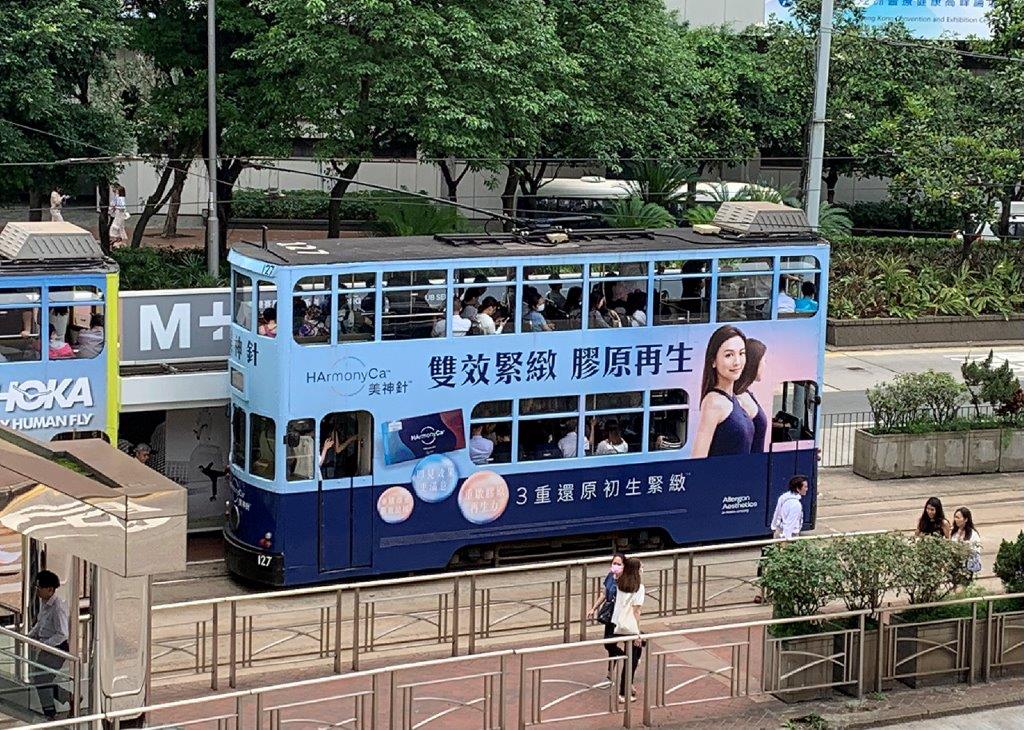 Tout un chacun remarquera que les motrices à double niveau arborent toutes des livrées intégrales publicitaires. Le marché de la commercialisation des espaces publicitaires, que représentent toutes les carrosseries des motrices à double niveau, a été accordé depuis 2017 à la société Cody OUT OF HOME Hong Kong, une filiale de la société australienne ARN Media limited. Pour ce qui est de la commercialisation des espaces publicitaires constitués par les stations de tramway, le marché a été attribué en grande partie à la société Cody OUT OF HOME Hong Kong et pour le surplus, portant sur une trentaine de stations de tramway les plus fréquentées, au Français JCDecaux.