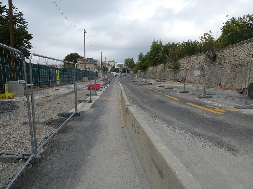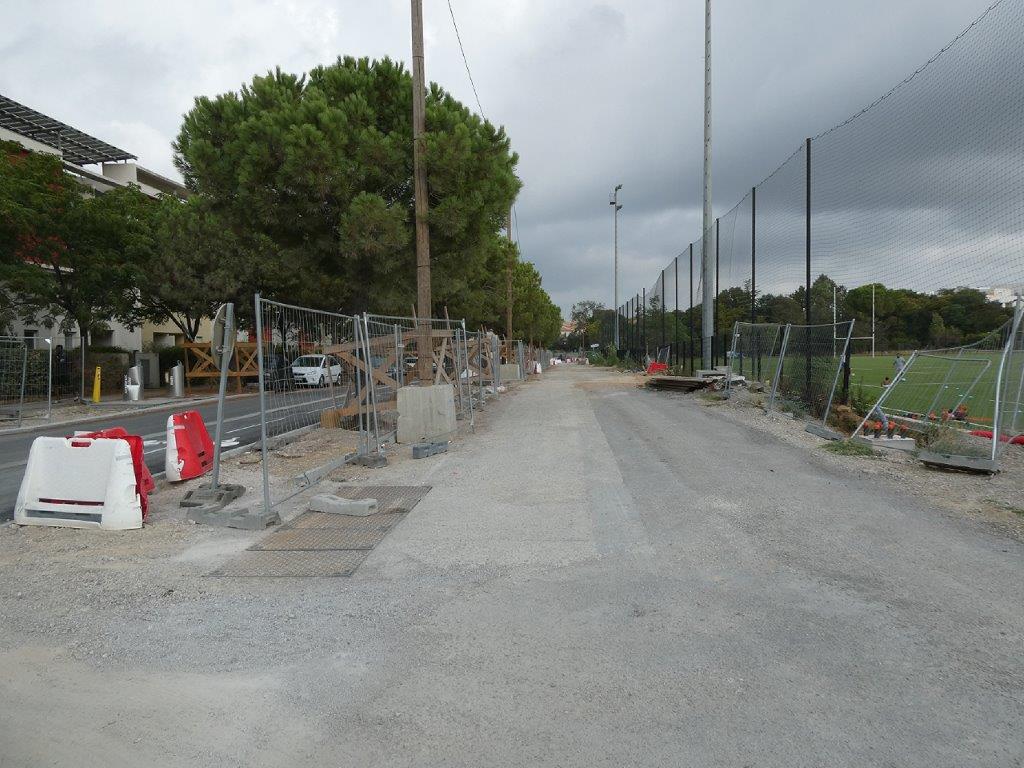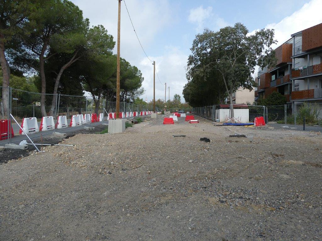 A ce jour, depuis plusieurs semaines déjà, la section à double voie ferrée la plus longue relie l’entrée de la Cité Créative, côté avenue Lepic, à la rue des Chasseurs à Montpellier.