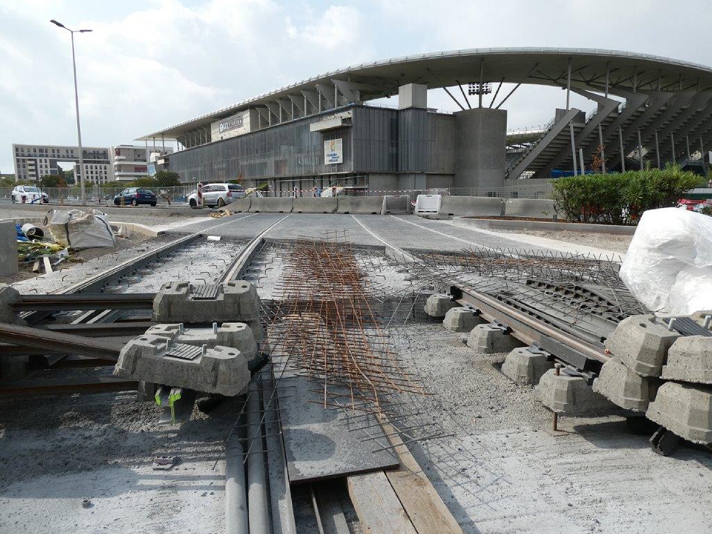 Dans le quartier Ovalie, les voies ferrées traversent l’avenue de Vanières , un point c’est tout et une très petite portion de double voie ferrée a été posée à la hauteur de la future entrée et sortie du parking de la brasserie du GGL Stadium.
