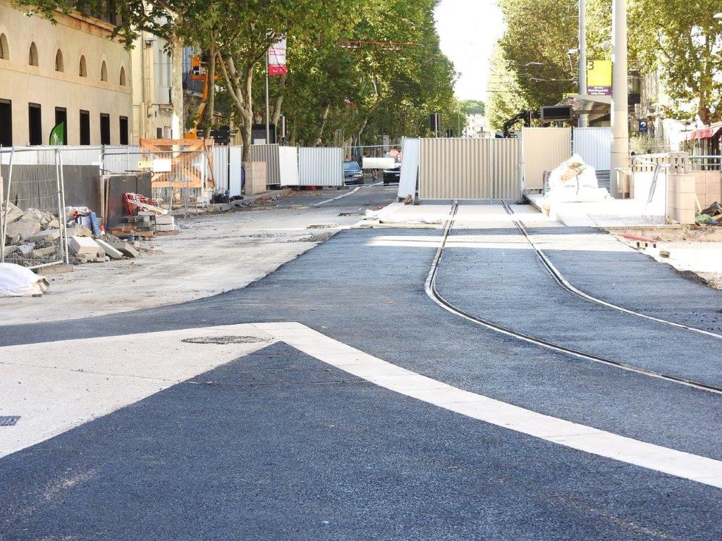 27 août 2024 – A Montpellier, dans le secteur Gambetta-Saint-Denis-Clemenceau, le raccordement des rails de la ligne 3 de tramway à ceux de la future ligne 5 n’a été réalisé qu’à moitié