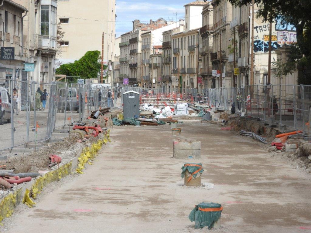Cinq mois après la pose des premiers rails à gorge sur l’avenue Georges-Clemenceau à Montpellier, dans le cadre de la construction de la future ligne 5 de tramway, force est de constater que cette phase de travaux progresse lentement sur les six cents mètres de cette artère commerçante dans laquelle le chantier a débuté au mois de novembre 2021.