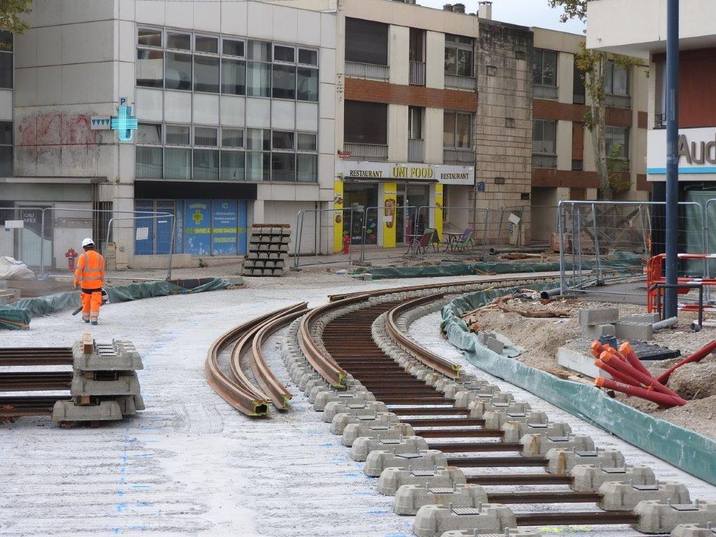 Des voies ferrées sont posées à la jonction de l’avenue Lepic et de la place du 8-Mai-1945 en plein travaux d’aménagement et sur laquelle les automobilistes ont bien du mal à trouver leur chemin en raison d’une nouvelle refonte des sens de circulation intervenue le lundi 30 septembre 2024.
