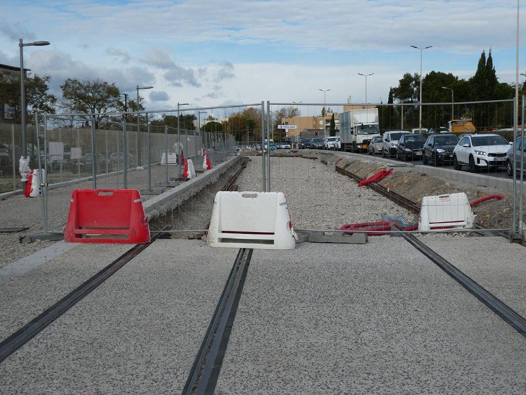 Au début de l’année 2024, Michaël Delafosse, maire de Montpellier et président de Montpellier Méditerranée Métropole, a déclaré que 80 % des rails de la future ligne 5 de tramway seront posés fin 2024, mais tout un chacun constatera qu’on sera loin du compte sur la partie objet du reportage photo.
