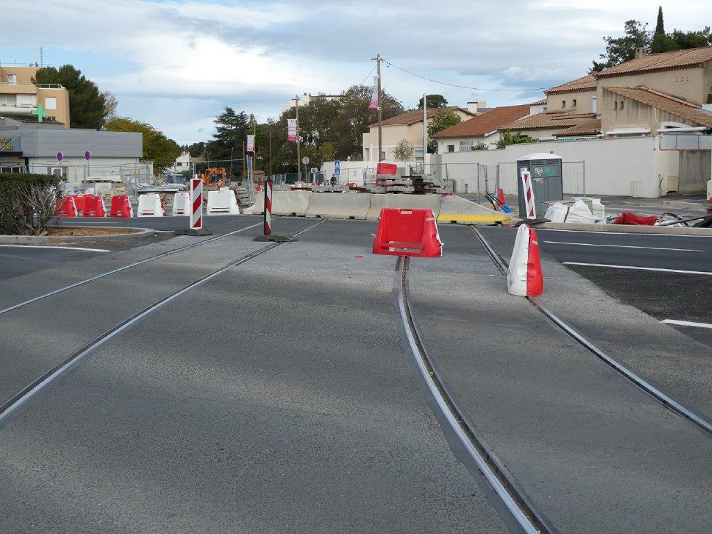 Sur la route de Lavérune, entre le rond-point Maurice-Gennevaux et le rond-point Paul-Fajon, les automobilistes devront traverser par deux fois les voies ferrées de la future ligne 5 de tramway : une première fois avant l’intersection avec la montée du Terral et une seconde fois deux cents mètres environ avant le rond-point Paul-Fajon. Il en sera de même pour les automobilistes qui circuleront dans le sens inverse.