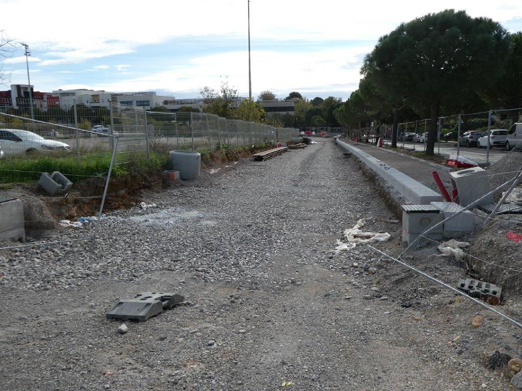 20 novembre 2024 – Future ligne 5 de tramway de Montpellier : état d’avancement des travaux entre le rond-point Maurice-Gennevaux et la place du 8-Mai-1945