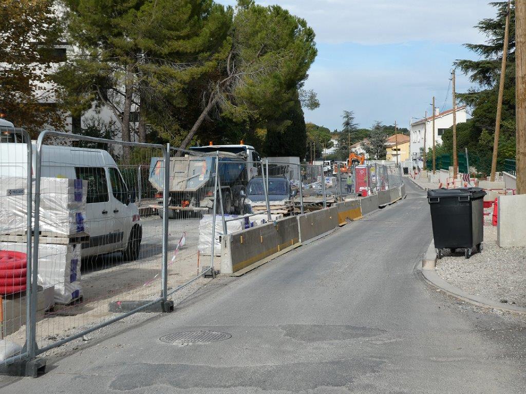 A l’instar de leurs homologues de l’avenue Georges-Clemenceau, les riverains et commerçants de la route de Lavérune, dans sa partie située entre la rue du Pas-du-Loup et la rue des Chasseurs, subissent de nombreux désagréments depuis plusieurs mois déjà. Des rails à gorge commencent à être stockés dans la rue des Chasseurs, dans sa partie située entre la route de Lavérune et la rue de Font-Couverte, une façon de leur signifier que les travaux de construction de la future ligne 5 de tramway progressent.
