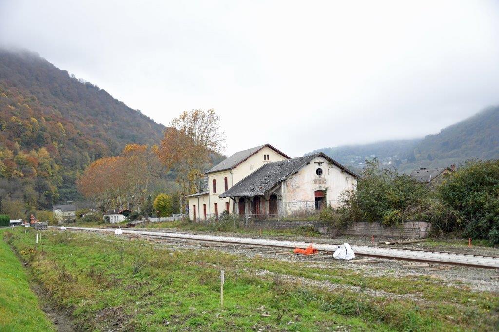 Photographie du bâtiment voyageurs de la gare de Luchon (Haute-Garonne) en cours de rénovation, le lundi 18 novembre 2024. Copyright : Thierry Leleu