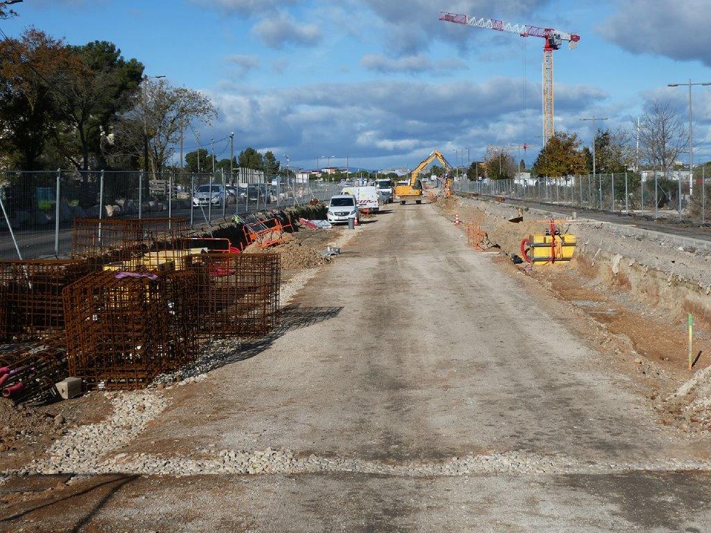 Les photos ci-après montrent l’état d’avancement des travaux sur ce prolongement au vendredi 6 décembre 2024 dans les secteurs Cambacéres et Odysseum.