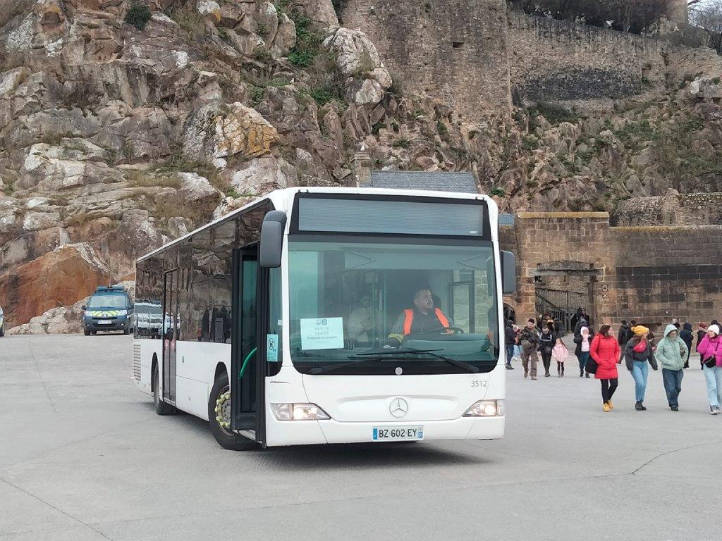 Depuis le samedi 28 avril 2012, les visiteurs du Mont-Saint-Michel sont invités à stationner leur véhicule sur un nouveau parking payant situé à 2,5 km au sud de l’îlot. Des autobus d’un type particulier, construits par l’Allemand COBUS Industries GmbH, assurent gratuitement la navette « Le Passeur » entre le nouveau parking et un arrêt alors implanté sur l’ancienne digue-route. Il est même possible de faire le trajet moyennant finance à bord de maringottes tractées par des chevaux de traits, un service qui n’a pas été reconduit après le changement de concessionnaire, le vendredi 14 octobre 2022.