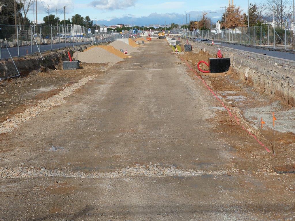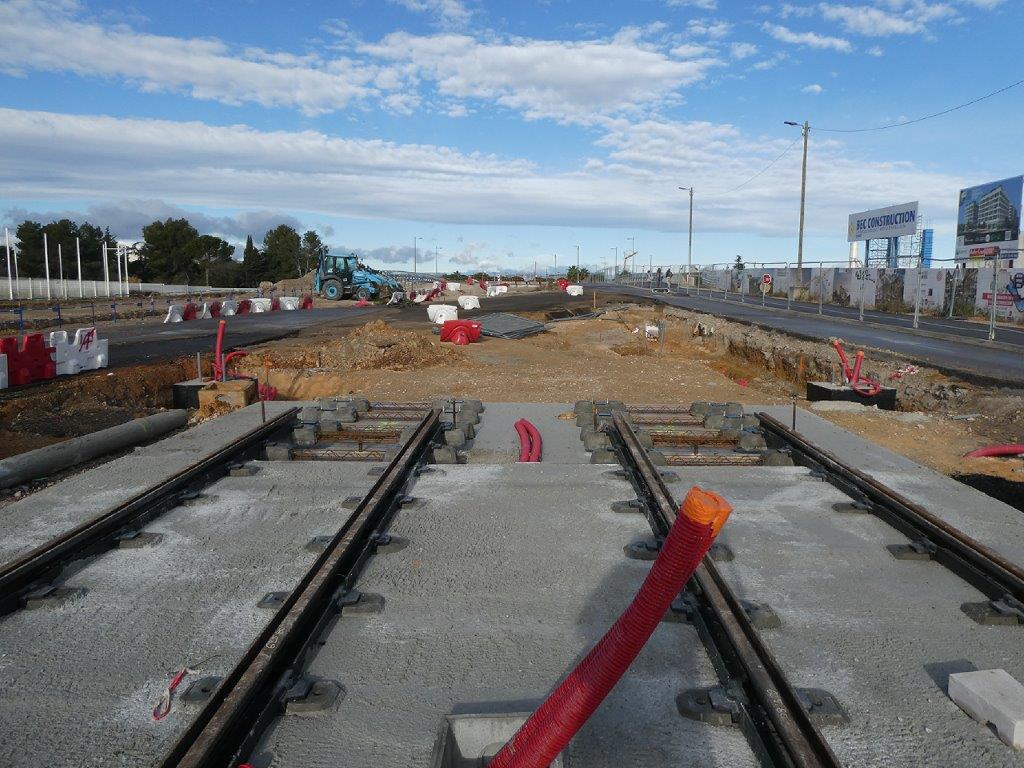 Photos prises à Montpellier, en bordure du chantier du prolongement de la ligne 1 de tramway entre la rue Jacques-Derrida, ZAC Cambacérès, et l’arrière-station du terminus « Odysseum », le samedi 11 janvier 2025. Copyright : Edouard Paris