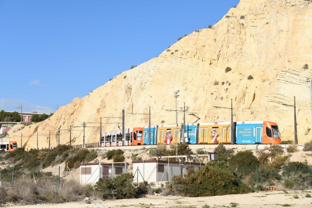 Ainsi, l’agglomération d’Alicante dispose à ce jour d’un réseau de tramways et de trams-trains à voie métrique composé de six lignes identifiées L1, L2, L3, L4, L5 et L9 desservant 71 stations au total. Les lignes 1 et 3 partagent le même tronc commun sur 14,4 km, qui correspondent à la longueur de la ligne 3, entre les stations « Alicante-Luceros » et « El Campello ». La ligne 1 exploitée avec des rames de type tram-train est semi-directe sur ce trajet. En effet, les rames de la ligne 1 ne marquent pas l’arrêt à la station « Albufereta », commune aux lignes 3, 4 et 5, ainsi que dans les stations situées entre « Lucentum » et « El Campello », la desserte des stations intermédiaires étant uniquement assurée par les rames opérant sur la ligne 3. La ligne 1 affiche une longueur totale de 44,57 km entre « Alicante-Luceros » et « Benidorm-Intermodal ». Le tronçon « El Campello » – « Benidorm-Intermodal » est principalement à voie unique électrifiée. Les lignes 2 (7,2 km) « Alicante-Luceros » – « Sant Vicent del Raspeig », 4 (14,61 km) « Alicante-Luceros » – « Plaza la Coruña » et 5 (13,2 km) « Porta del Mar » – « Plaza la Coruña » sont des lignes dont le service est exclusivement assuré par des rames de tramway Flexity Outlook Bombardier. La ligne 2 dessert le nord de la ville d’Alicante tandis que les lignes 4 et 5 desservent le quartier Playa de San Juan à Alicante. La ligne 9 « Benidorm » – « Denia », d’une longueur de 50,85 km, est une ligne à voie unique non électrifiée 100 % tram-train exploitée au moyen de six rames de la série 5000 de type tram-train bi-mode (750 V CC / diesel-électrique) Citylink Stadler, que l’on peut également voir circuler sur la ligne 1, lesquelles remplacent six autorails bi-caisse à motorisation diesel de la série 2500 MAN/Sunsundegui maintenus en service sur la ligne 9 jusqu’à ce dimanche 26 janvier 2025.