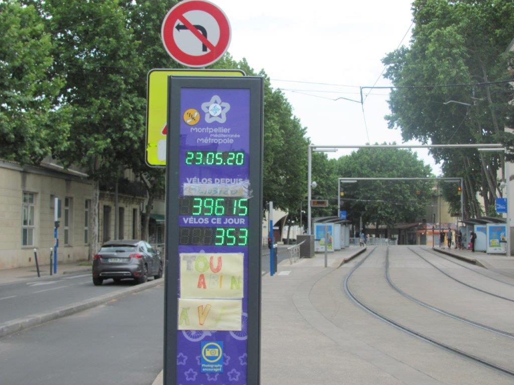 Compteur vélo de l’avenue Bouisson-Bertrand à Montpellier photographié le samedi 23 mai 2020 à 13h37. Copyright : Edouard Paris