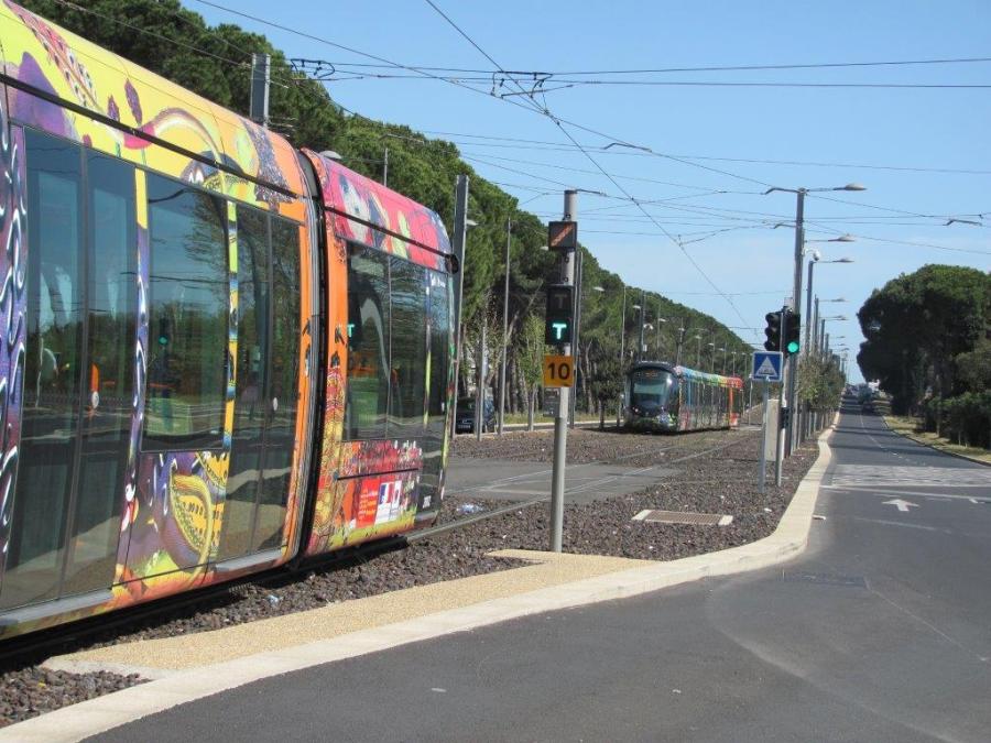 A la bifurcation de Boirargues, direction « Lattes Centre » pour la rame 2082 Citadis 402 Alstom, le samedi 11 avril 2015