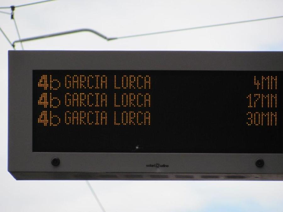 Tableau électronique d’information du quai 4b du terminus « Garcia Lorca » (17/09/2016)