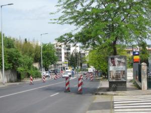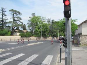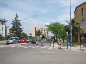 - A Montpellier, dans le haut de l’avenue Paul-Bringuier, le rétrécissement intervient une vingtaine de mètres avant le carrefour avec la rue d’Alco. Photo prise le mardi 5 mai 2020. Copyright : Edouard Paris