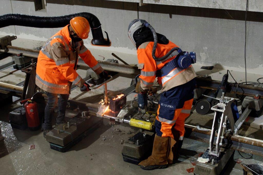 Première soudure de rail dans la future station « Oullins Centre » de la ligne B du métro de Lyon, le mercredi 8 décembre 2021. Copyright : Yvon Brument
