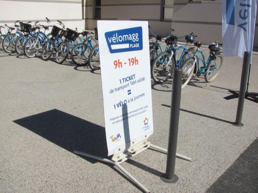 Panneau installé juste avant le comptoir d’accueil du service Vélomagg Plage à Villeneuve-lès-Maguelone, sur lequel sont inscrites les conditions de retrait d’un Vélomagg Plage. Photo prise le samedi 4 juillet 2020. Copyright : Edouard Paris