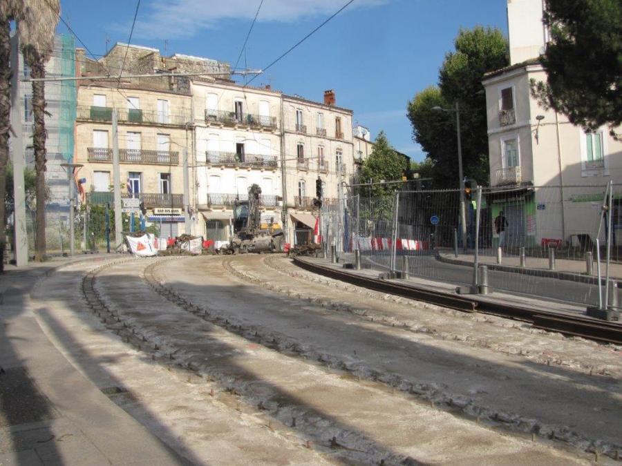Autre vue de la rue du Faubourg-de-Nîmes, tronc commun des lignes 1 et 4 de tramway, en direction du boulevard-Louis-Blanc, le dimanche 2 août 2020. Copyright : Edouard Paris