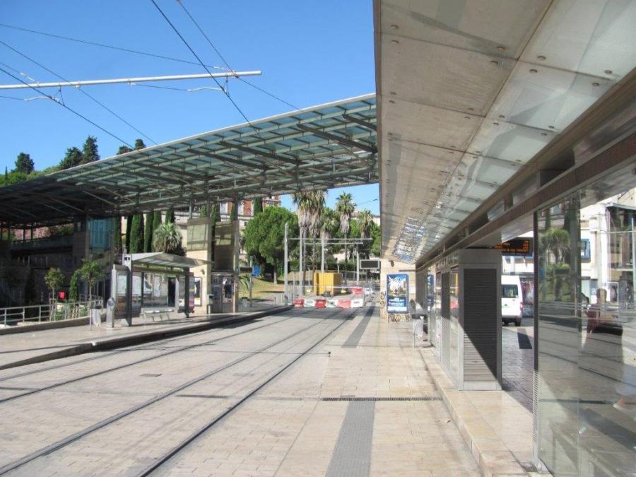 Du samedi 4 juillet au dimanche 30 août 2020, la station « Corum », quais communs aux lignes 1 et 4 de tramway, n’est pas desservie par les rames des deux lignes précitées en raison de travaux entre ladite station et la place Albert-1er à Montpellier. Photo prise le jeudi 9 juillet 2020. Copyright : Edouard Paris