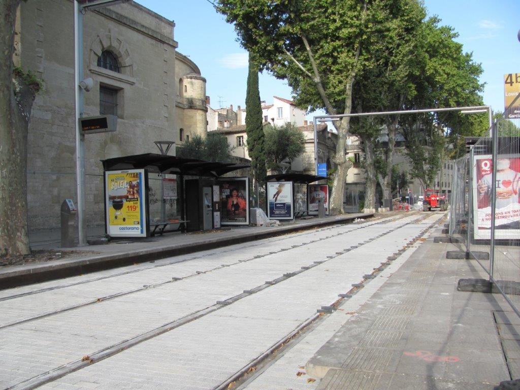Boulevard Louis-Blanc, nouveau revêtement constitué de pavés en béton à la hauteur de la station éponyme commune aux lignes 1 et 4 de tramway. Photo prise le dimanche 2 août 2020. Copyright : Edouard Paris
