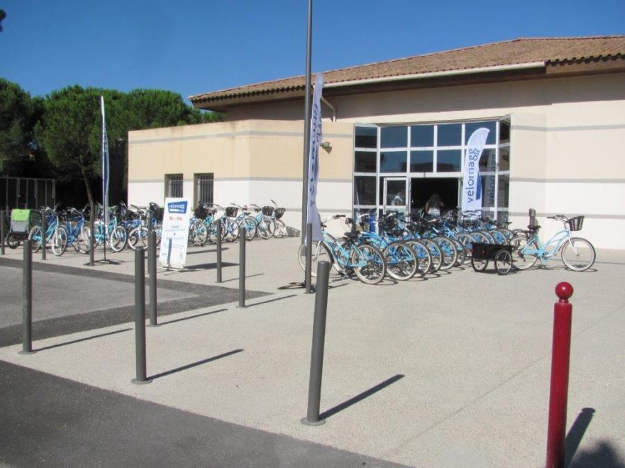 Emplacement de l’accueil du service estival Vélomagg Plage à Villeneuve-lès-Maguelone, centre culturel Bérenger-de-Frédol, façade côté chemin du Mas-Neuf. Photo prise le samedi 4 juillet 2020. Copyright : Edouard Paris