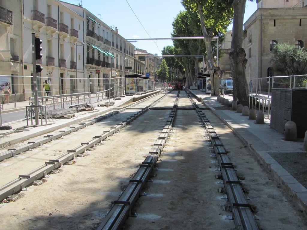 Aperçu de la plateforme du tronc commun des lignes 1 et 4 de tramway à la hauteur de la station « Louis Blanc », le vendredi 17 juillet 2020. Copyright : Edouard Paris